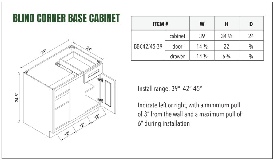 BLIND CORNER BASE CABINET 39/42
